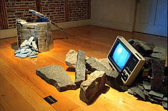 ![]() © Laurent Bélanger Matière et virtualité Installation: calcaire, résine et infographie 1996 |